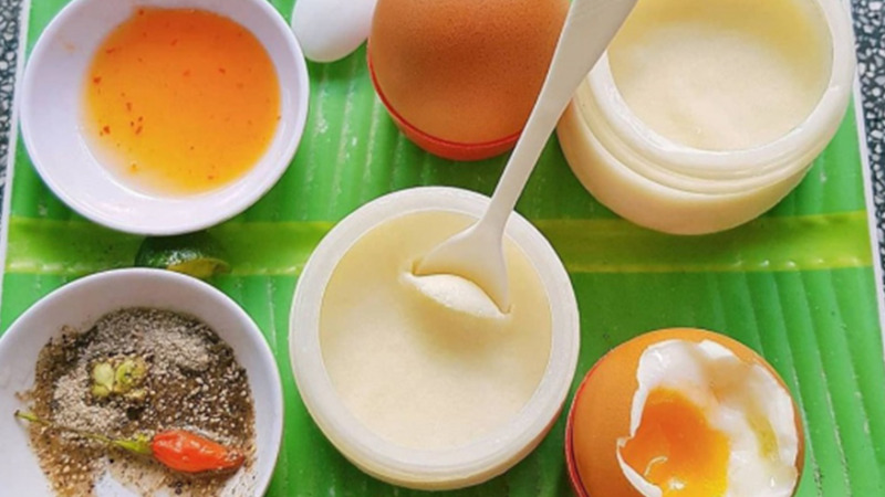 Yaourt - trứng gà lòng đào bạn không thể bỏ qua khi ghé thăm Vũng Tàu. Với mức giá dao động từ 7.000 du khách đã có thể thưởng thức được một món ăn với sự dẻo mịn, chua ngọt vừa phải của yaourt ăn kèm trứng lòng đào béo thơm và muối tiêu, đặc biệt là nước chấm được pha chế theo công thức riêng nên làm tăng hương vị cho món trứng gà lòng đào này.